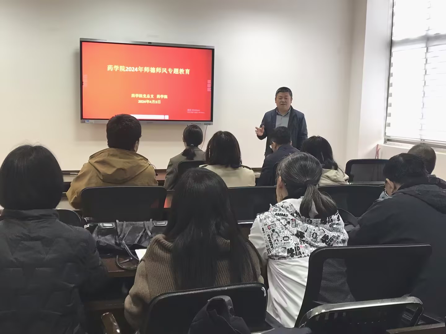 党建学习环节,开展了2024年度药学院师德师风专题教育。党总支书记李俊波同志带领与会教师集体学习《新时代高校教师职业行为十项准则》,并收看教育部公开曝光的违反高校教师职业行为十项准则典型案例。引导教师引以为鉴,不忘立德树人初心,牢记为党育人、为国育才使命。