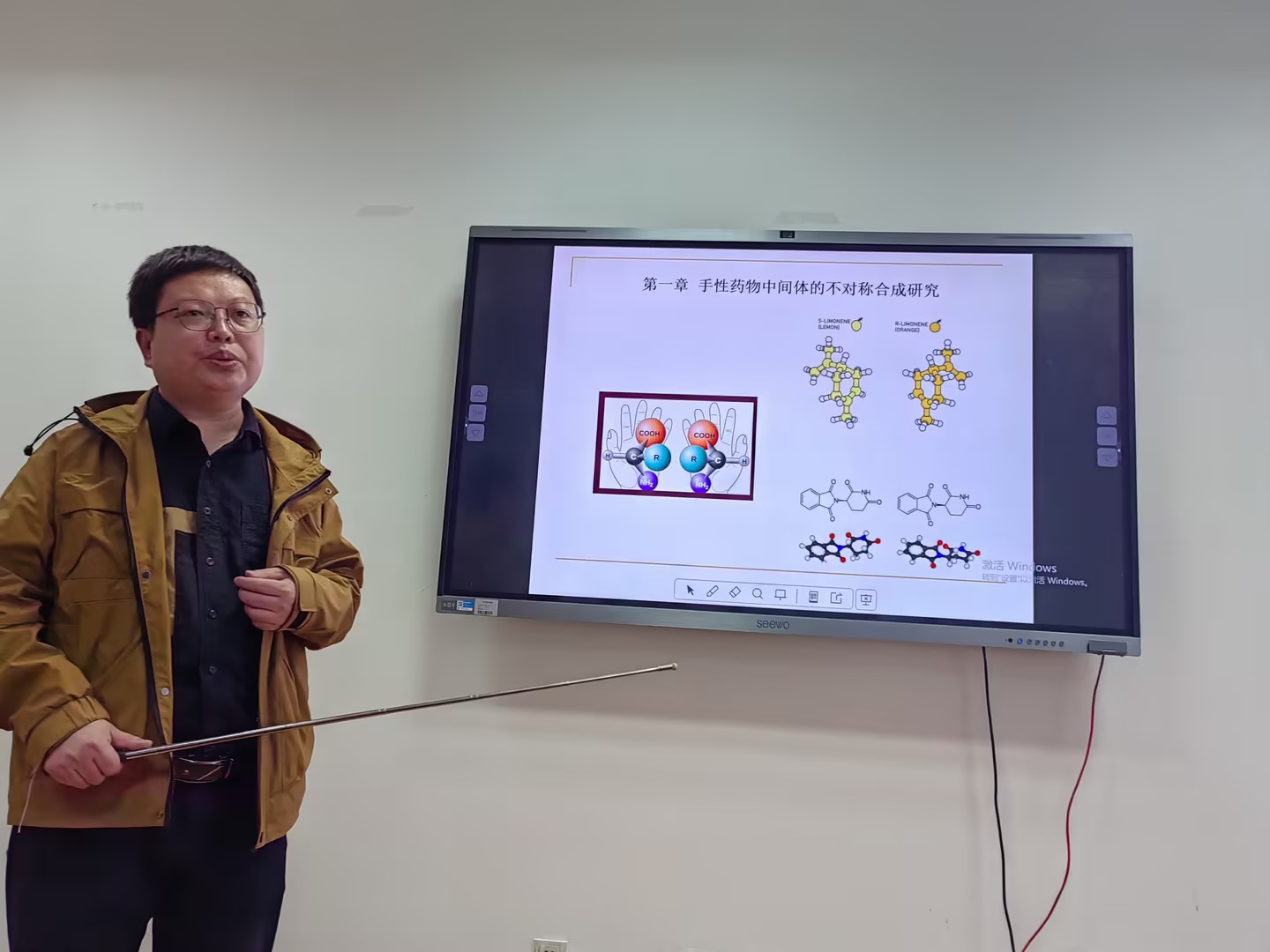 学术交流环节,药学院药物化学教研室张辉博士做了题为《手性药物中间体的不对称合成及抗肿瘤新药的研究》的报告,介绍手性药物中间体的不对称合成及抗肿瘤新药的合成及分析方法学研究。互动环节,张辉博士就药物中间体的手性有机催化及分析方法等内容与大家进行了探讨和交流。